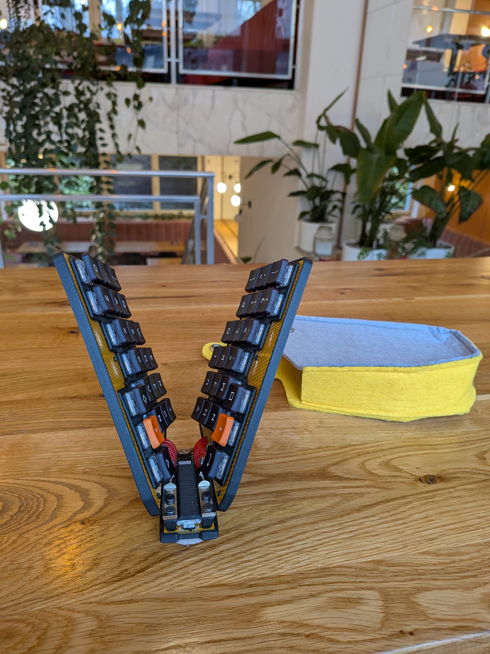 The way the hinges are mounted doesn’t allow for much tenting (just a few degrees). This is intentional, otherwise, the keyboard would become unstable due to the shape of the PCB.