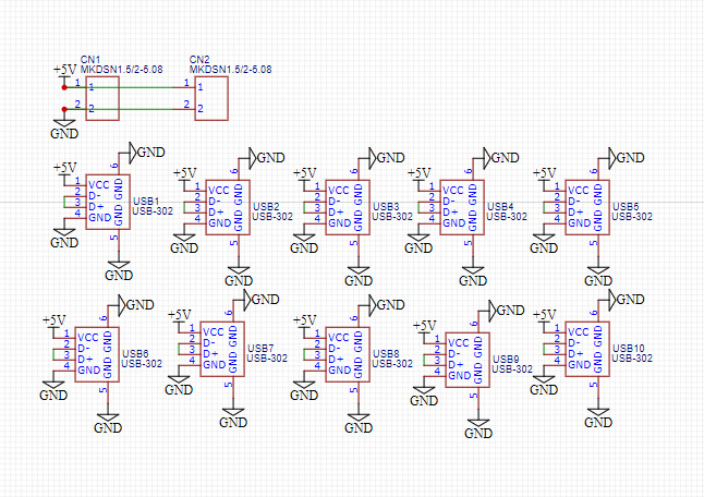 Schematics is dead simple 5V in parallel, and shortcut D+ and D- lines. All devices I’ve tried - including iOS and Android phones charge just fine.